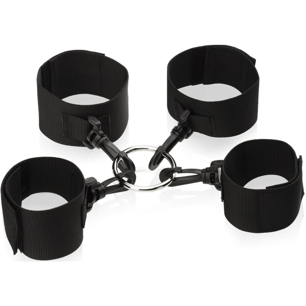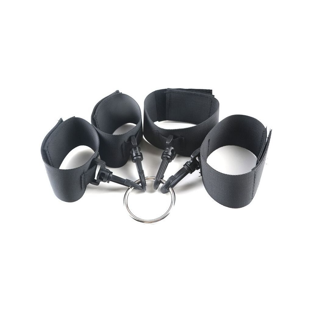 Komplet obsahuje 2 páry pout (na ruce a na nohy) s velmi pevným kulatým kovovým spojem pomocí pevných karabinek. Pouta jsou plně nastavitelná pomocí suchých zipů.