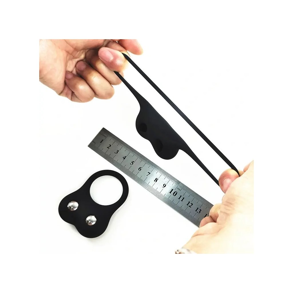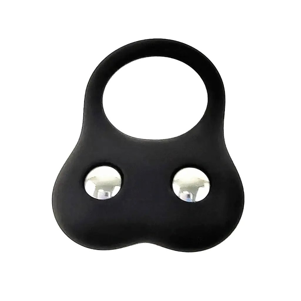 Netradiční erekční kroužek se dvěma kuličkami, které slouží jako závaží.