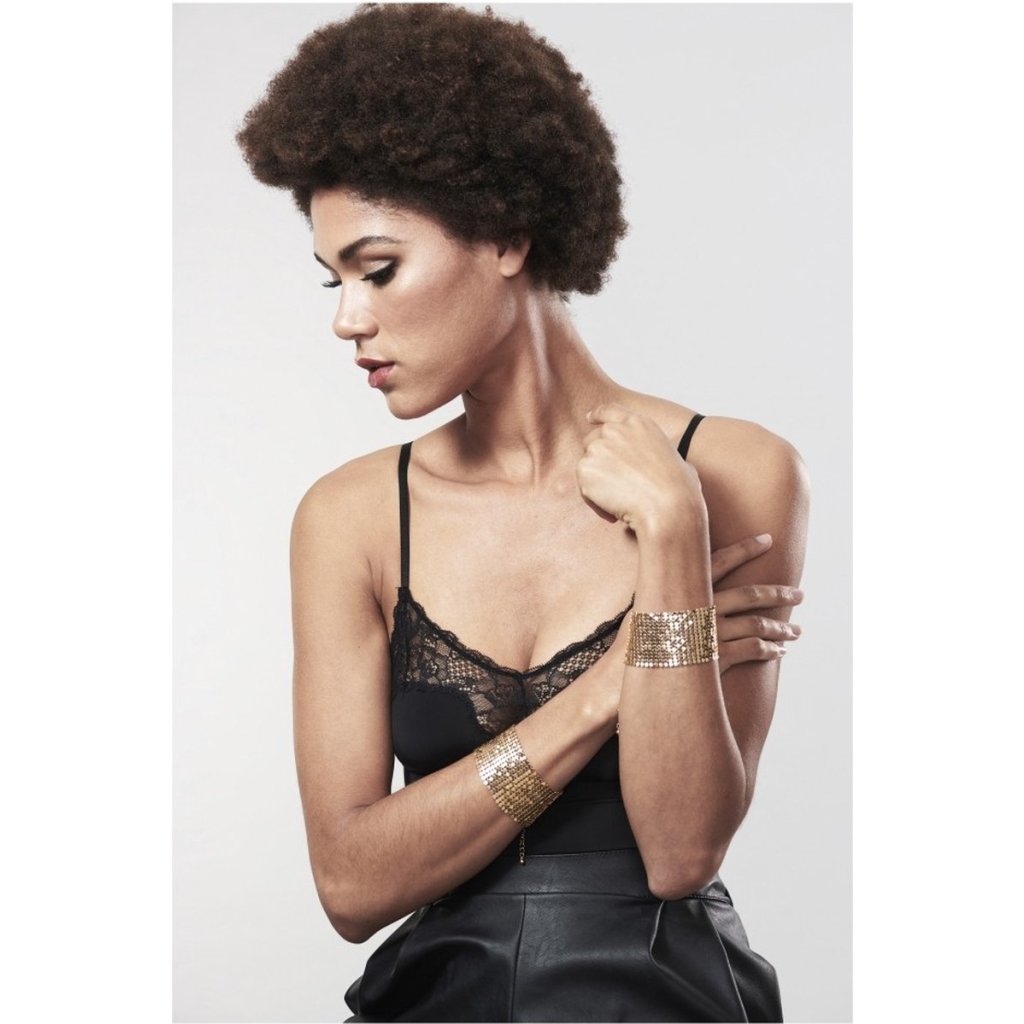 Na veřejnosti přitáhnou oči všech a v soukromí přinesou rozkoš. Dva náramky, které vypadají jako krásný, lesklý šperk jednoduše proměníte ve zlatá pouta. Stačí je spojit řetízkem a Vaše partnerka Vám bude vydaná na milost. Náramky se hodí pro vzrušující hry mezi vášnivými páry nebo i pro pána a jeho otrokyni. Zlaté šperky budou subince připomínat, kdo má nad ní kontrolu a může si ji vzít kdykoli a kdekoli pouhým přidáním řetízku.