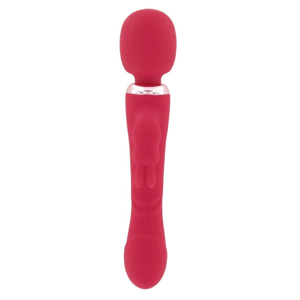 Z jedné strany je to silná masážní hlavice o průměru 5 cm s flexibilním krkem. Z druhé strany vás potěší realisticky vytvarovaný vibrátor o průměru 3,7 cm s kratší částí na klitoris - dokonalým králíčkem s čumáčkem a oušky. Tato část naráz potěší jak váš G-bod, tak i klitoris.