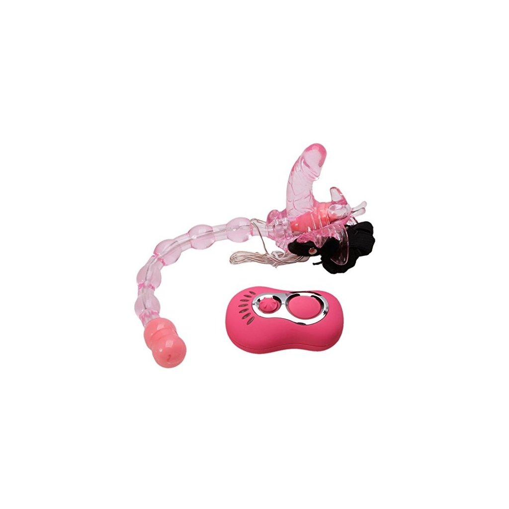 Tři části pro trojitou stimulaci - malý vibrátor pro vaginální dráždění, anální korále s vibrační patronou a výstupek pro dráždění klitorisu. Pružné navlékací popruhy budou držet hračku hezky na místě a Vy se tak budete moci plně soustředit jen na slastné pocity z vibrací. Na kabelovém ovladači si můžete vybrat ze sedmi druhů vibrací.