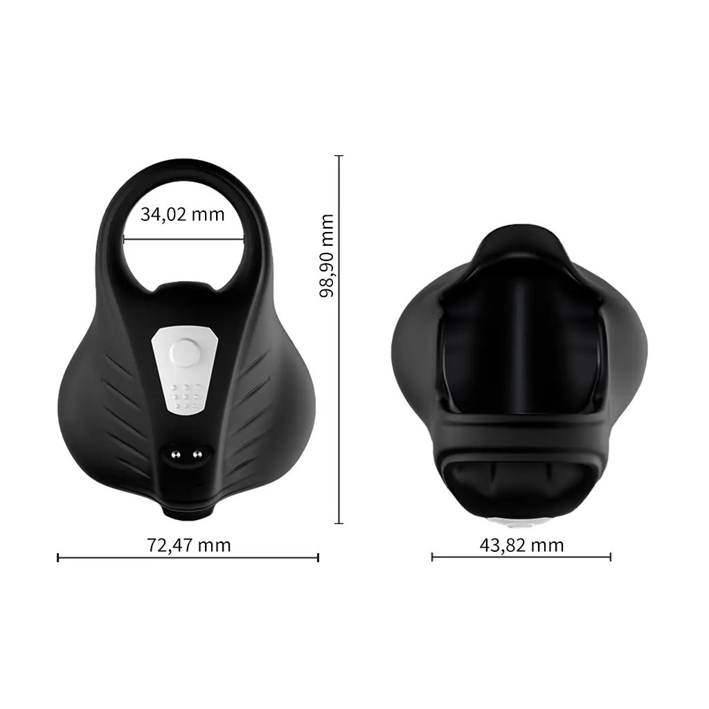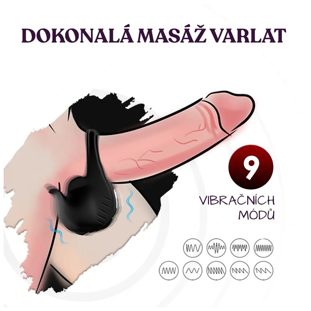 Tento návlek je vyrobený z jemného silikonu. Je pružný, a to jak kroužek, tak i návlek na samotná varlata. Vnitřní část návleku svým tvarem kopíruje tvar varlat. Na těle drží díky velkému očku, které je ve skutečnosti erekční kroužek. Kroužek nasadíte na penis a vedle potěšení z vibrací si dopřejete i pevnou erekci. Minimální průměr kroužku je 3,4 cm a vstupního otvoru na varlata 4,3 cm.