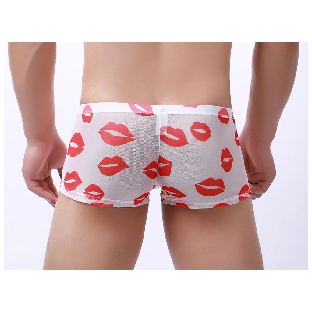 K nošení průhledného prádla je potřeba odvaha a sebevědomí. Užijte si to! Přiléhavé elastické boxerky jsou vyrobené z jemné transparentní síťoviny se sametovým potiskem v leopardím vzhledu. Se širokým strečovým pasem. Měkké a pružné pro vysoký komfort nošení.
