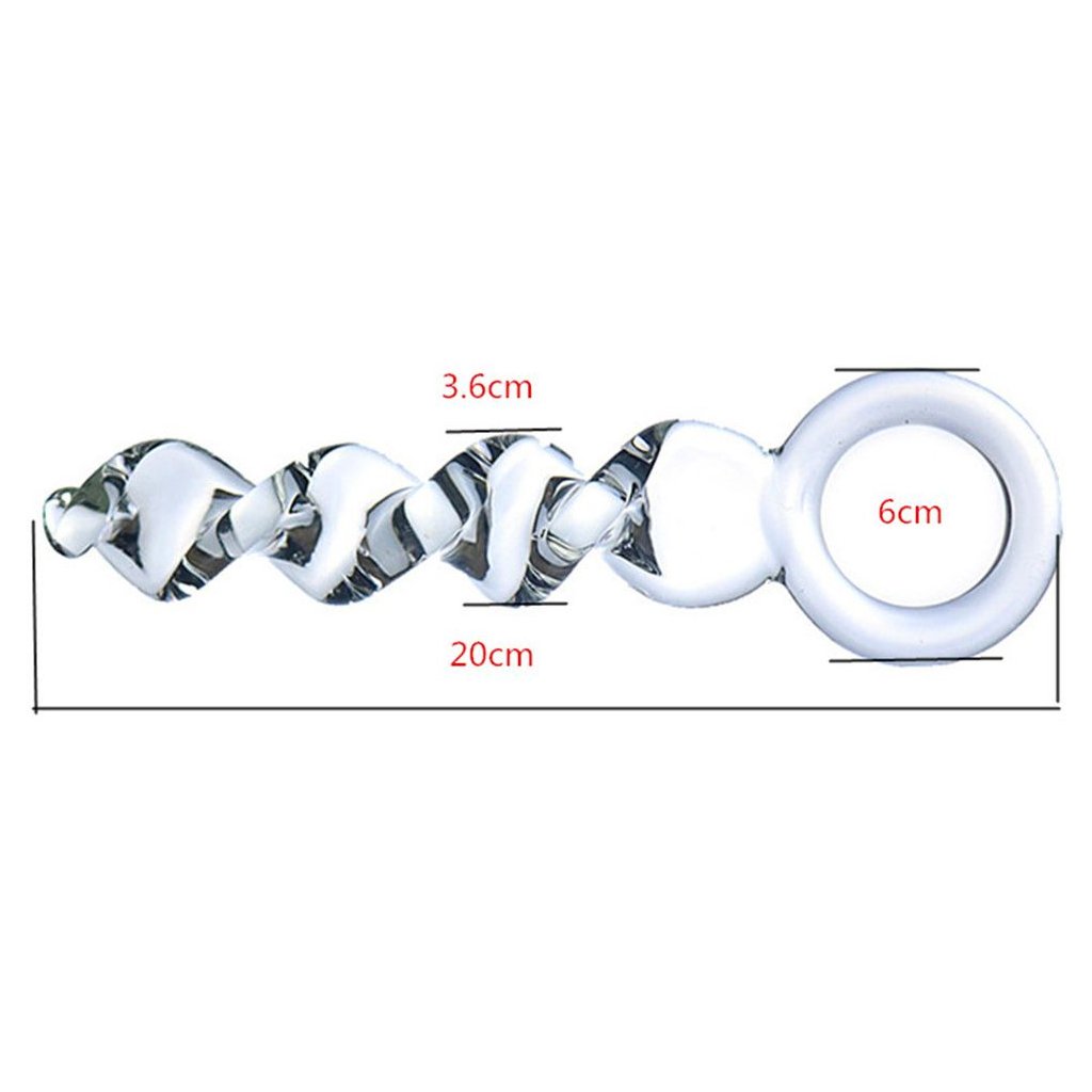 Průhledné spirálovité dildo s kroužkovou rukojetí je vyrobeno z bezpečného skla. Snadno se čistí.