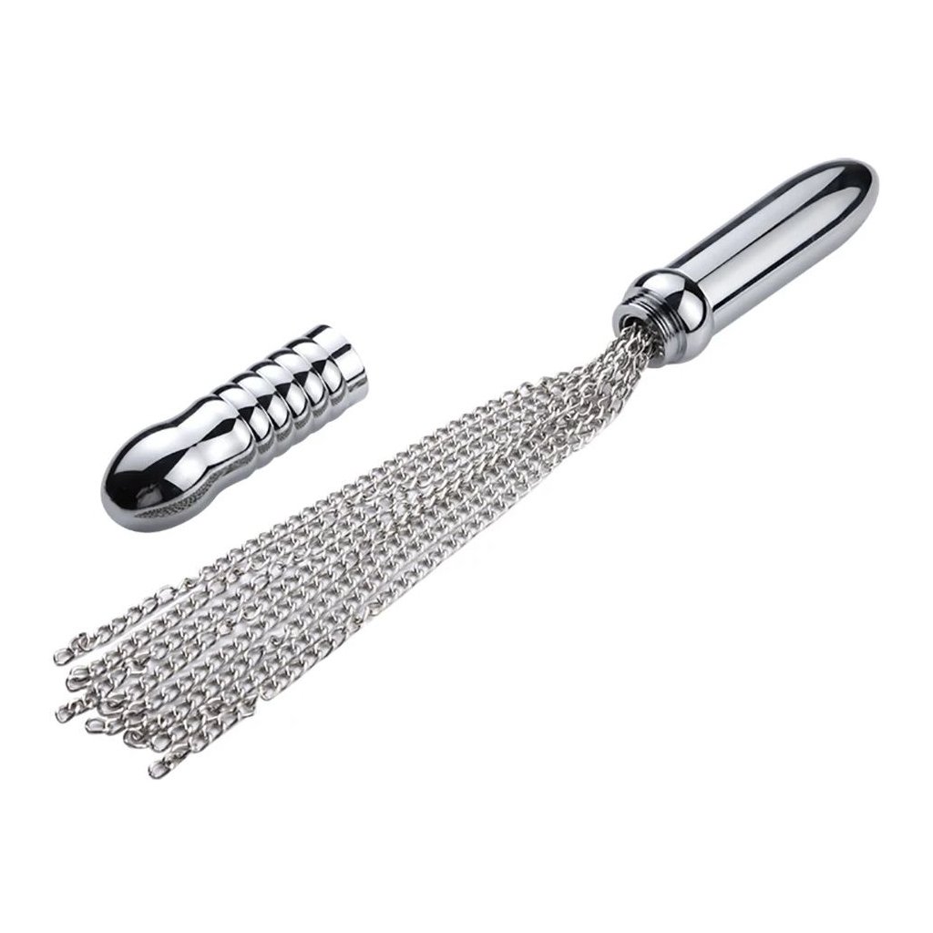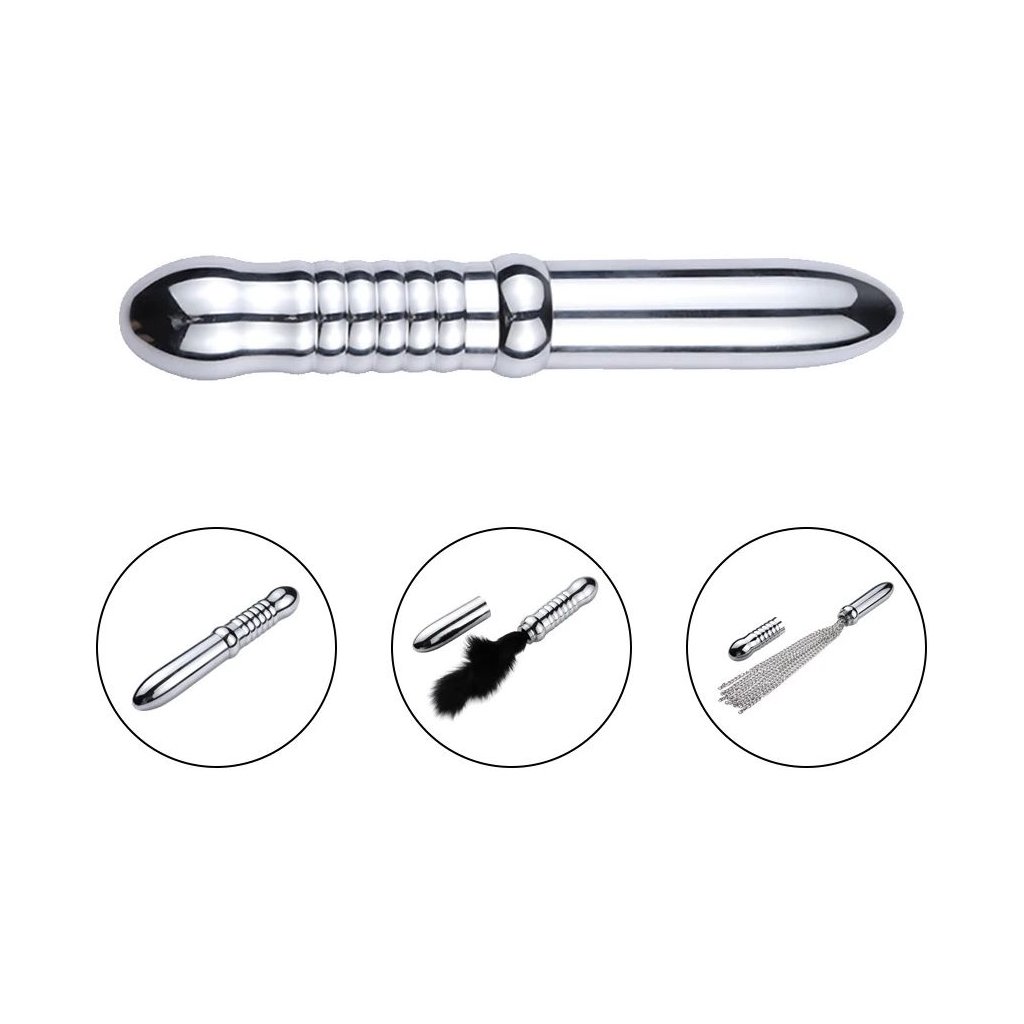 4v1 Luxusní nerezové dildo, anální kolik, bičík a šimrátko