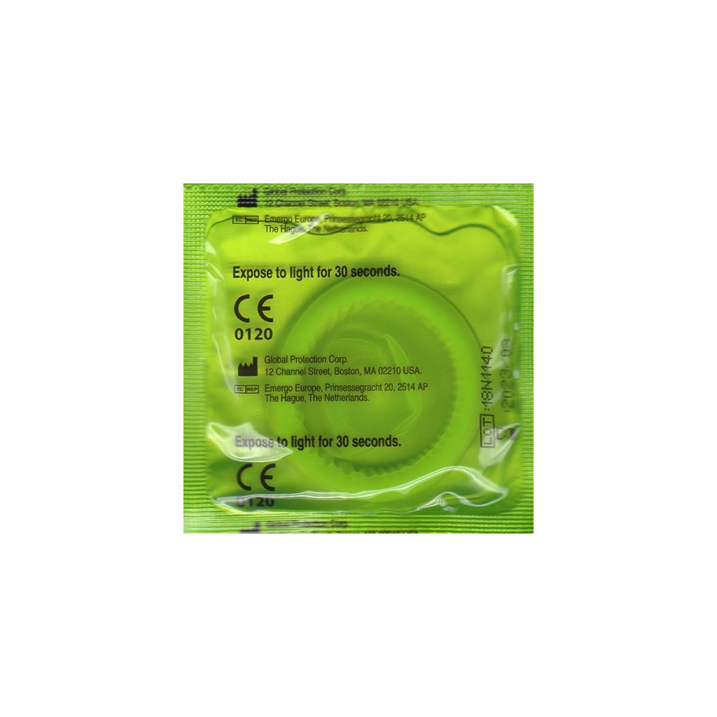 Ohromte při sexuálních hrátkách kondomem EXS Glow in the Dark. Jednoduše držte kondom v kondomovém obalu proti světlu a po 30 sekundách kondom nasaďte a buďte připraveni zářit!