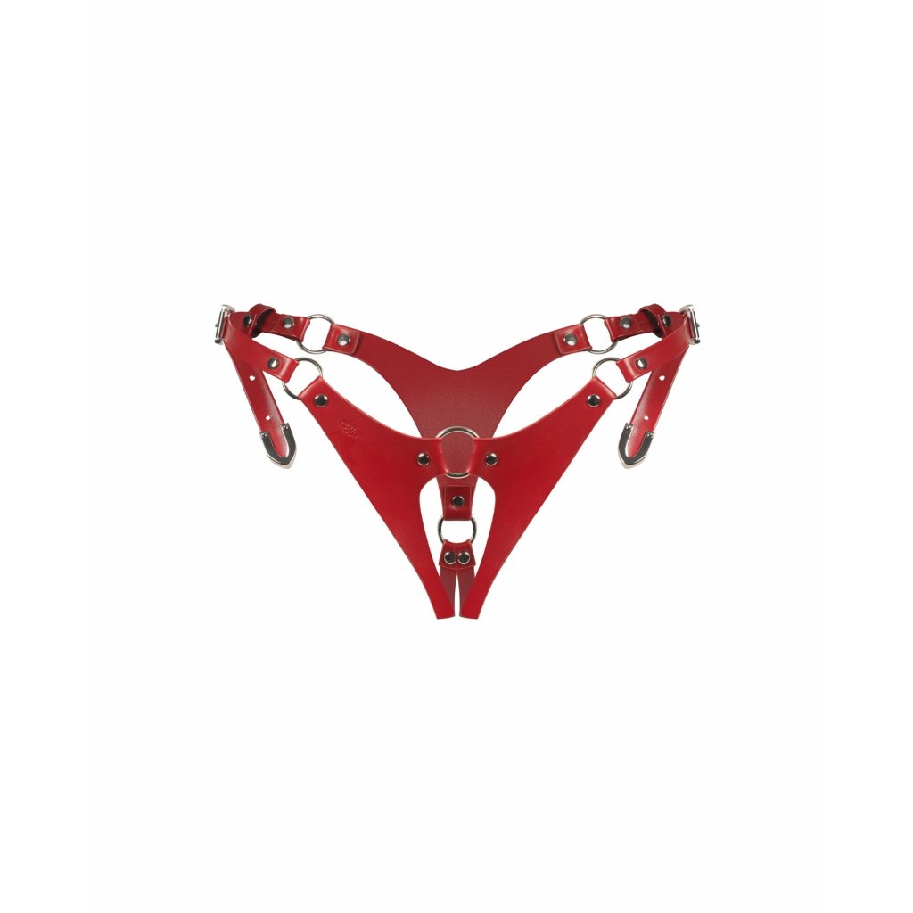 Minimalismus a odvážnost v prémiové podobě. Tanga Inferro bez rozkroku zdůrazňují přednosti těla a odhalují to, co je nejvíce smyslné. Design červených pásků a stříbrných kroužků leží na těle jako erotické šperky a vede pohled přesně tam, kam chcete.tanga s otevřeným rozkrokem