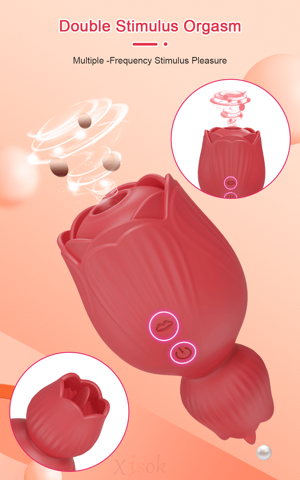 2v1 Kombinovaný podtlakový stimulátor a dráždivý jazýček Red Rose