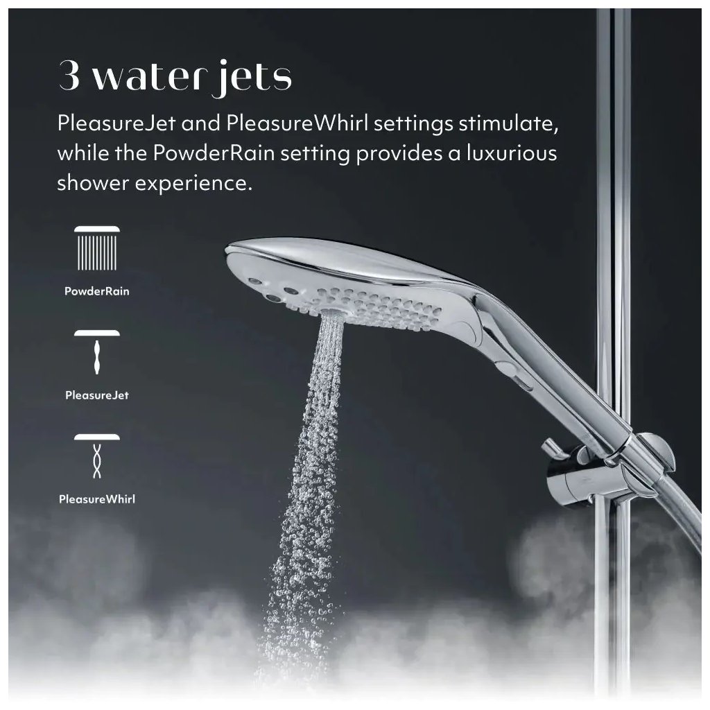 Nastavení PleasureJet a PleasureWhirl stimulují klitoris, zatímco nastavení PowderRain poskytuje luxusní sprchu. Všechna nastavení jsou pečlivě vypilována předními výrobci koupelen hansgrohe pro optimální výkon.