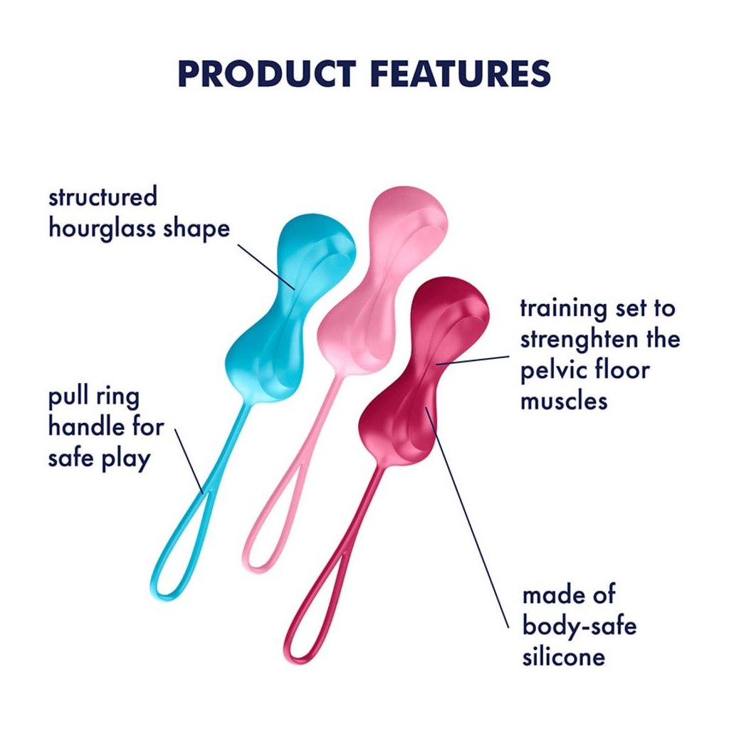 Zpevněte své svalstvo a nadělte si explozivní orgasmy. Zároveň si snadno omotáte kolem prstu i svého partnera. Vaše zpevněné svalstvo sevře jeho penis ještě pevněji a umožní mu zažít intenzivní pocit rozkoše, který ho připraví o rozum. Díky lékařskému silikonu příjemnému na dotyk je zavádění a nošení kuliček velmi snadné a pohodlné. Koncové poutko, které je rovněž kompletně vyrobeno ze silikonu, slouží ke snadnému vyjmutí kuliček.