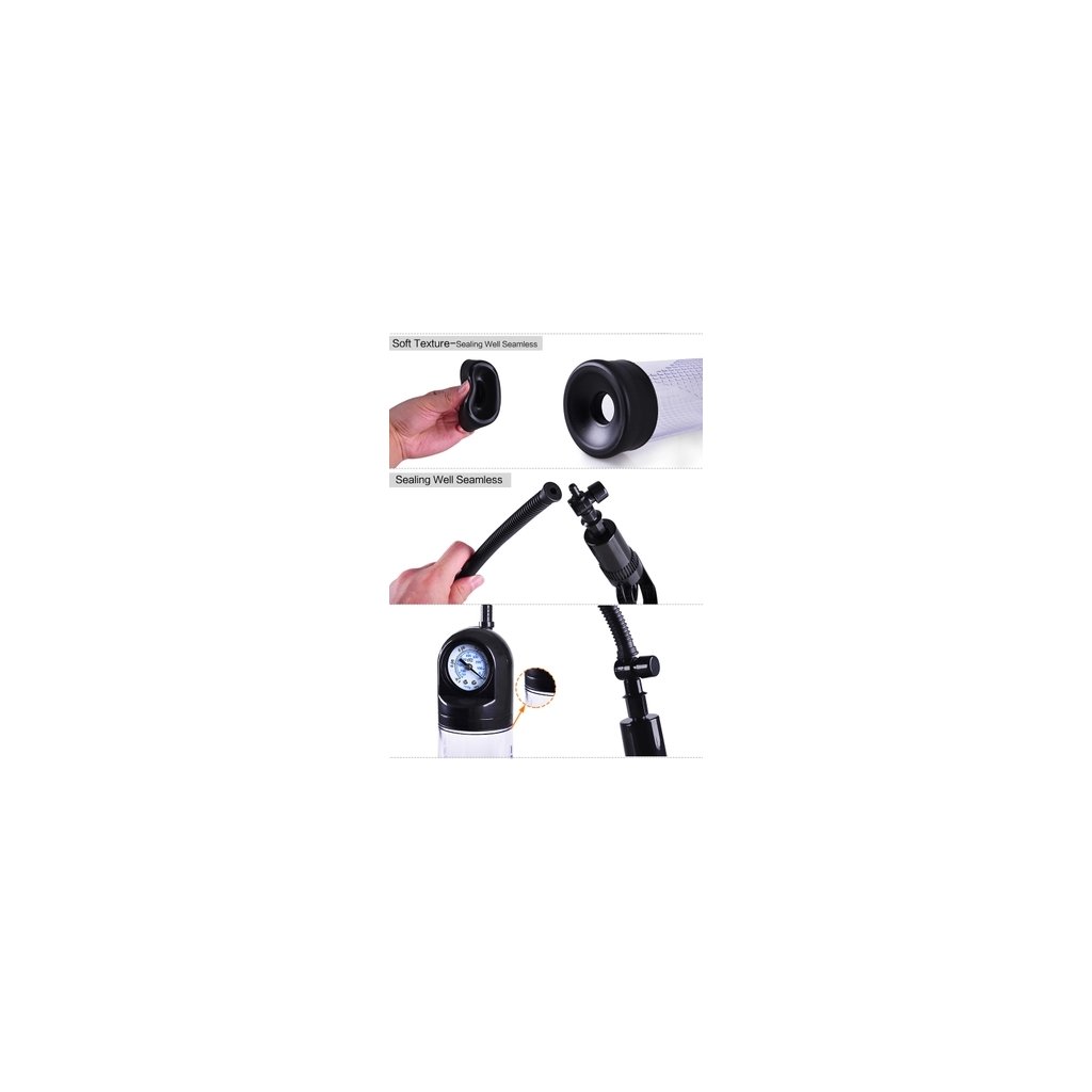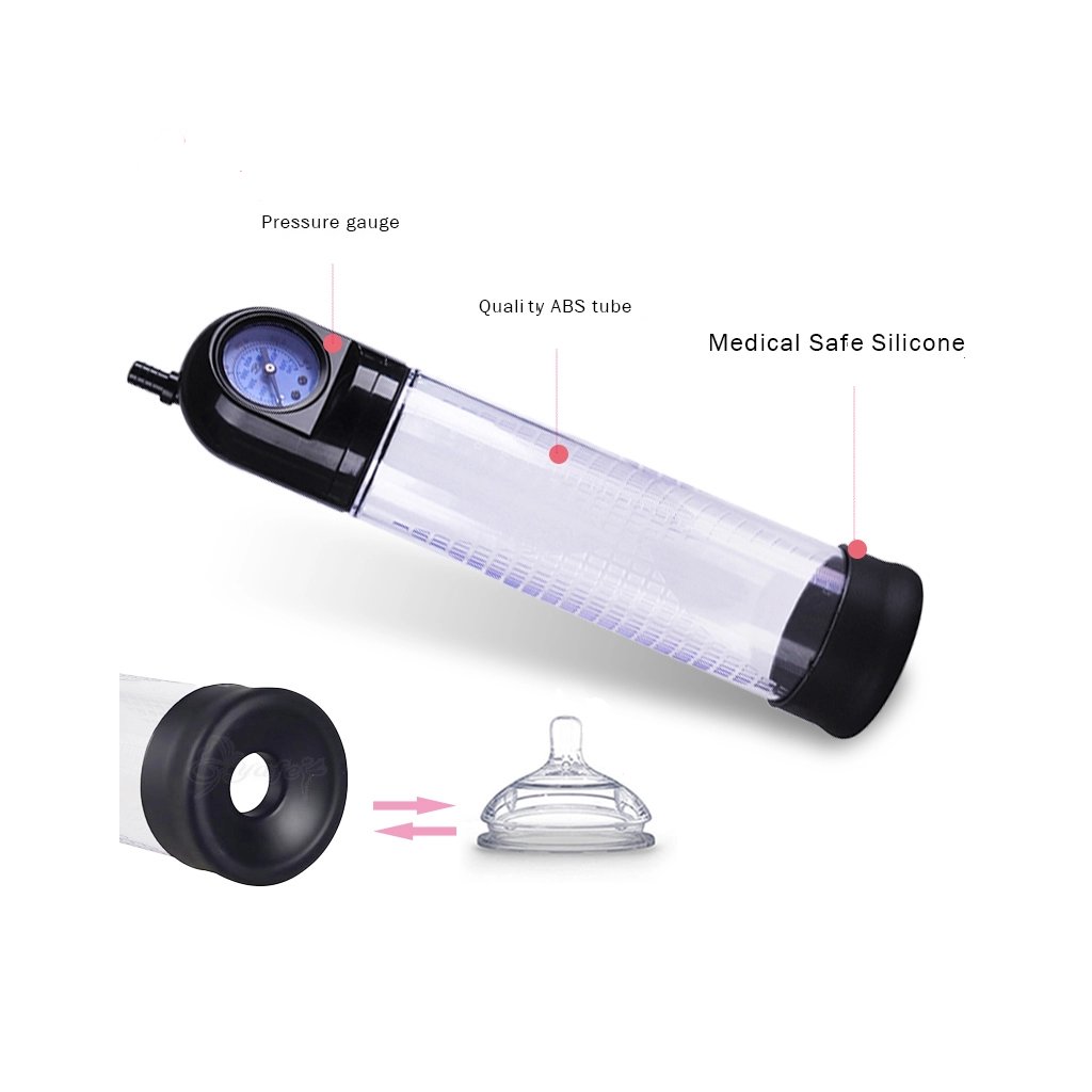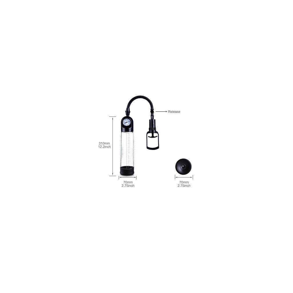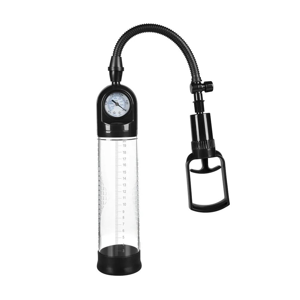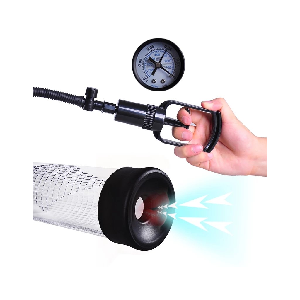 Vakuová pumpa pro muže slouží k tréninku výdrže, dosažení erekce a topoření. Zlepšuje sexuální zdraví a může způsobit menší, avšak trvalé zvětšení penisu. Pumpa má snadné ovládání pomocí stiskací rukojeti a navíc je doplněna o manometr, na němž je vidět stupeň podtlaku, který uvnitř válce vzniká.