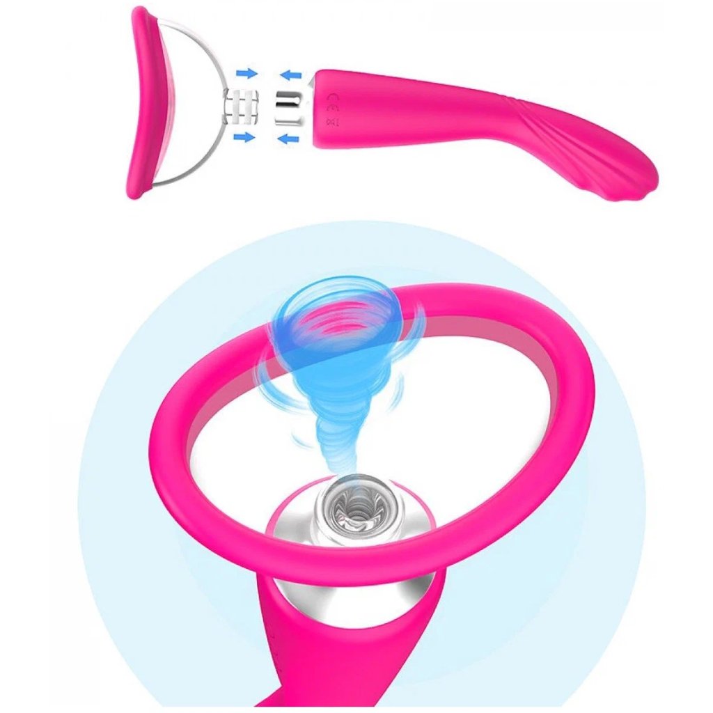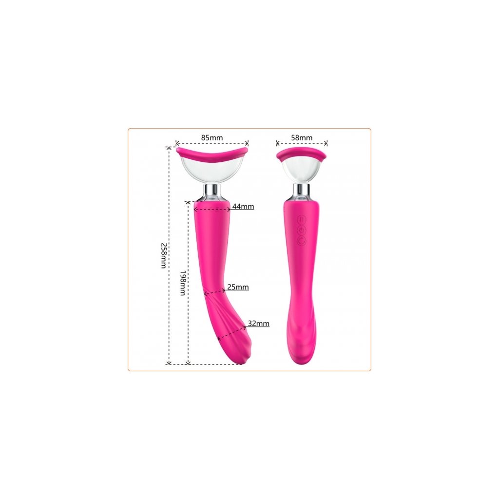 Originální intimní doplněk pro stimulaci klitorisu, vagíny, bradavek a dalších orgánů. Na jednom konci je hluboký vibrátor a na druhém průhledný kalíšek pro vytvoření podtlaku. Tato intimní pomůcka nabízí různé vibrační a podtlakové režimy, které se ovládají tlačítky na těle. Vibrátor se používá k vnější a vnitřní stimulaci erotogenních zón a vytváření vibrací. Pro vytvoření podtlaku umístěte kalíšek na požadované místo a ujistěte se, že těsně přiléhá k tělu. Stisknutím příslušných tlačítek zapnete/vypnete režim podtlaku.