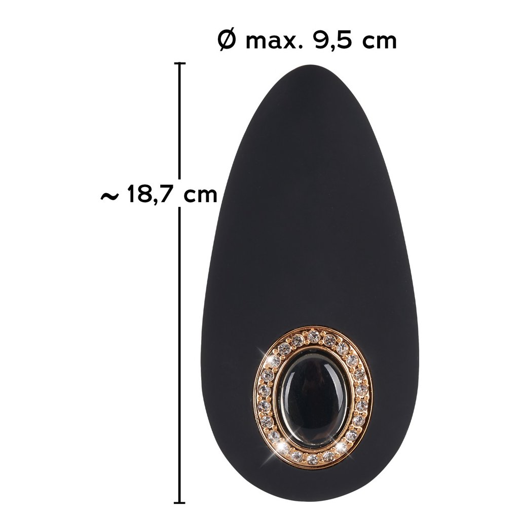 Cleopatra je kolekce kvalitní silikonových erotických pomůcek se smyslem pro účinnost, ale také luxusní design. Knoflíky jako drahokamy a zlaté detaily působí elegantním dojmem a funkce hraček vás budou dráždit a těšit k zbláznění. Darujte hračku z kolekce Cleopatra přítelkyni, kamarádce nebo sama sobě. Připomíná šperk a umí potěšit, to ženy milují. Ergonomicky tvarovaný odkládací vibrátor se sametově měkkým povrchem. Vibrátor je v mystickém designu a má krásný drahokam a ozdobný knoflík v reflexním designu. Je pěkný a pružný. Má také 10 vibračních režimů, které lze ovládat stisknutím tlačítka. Voděodolný. Obsahuje USB kabel.
